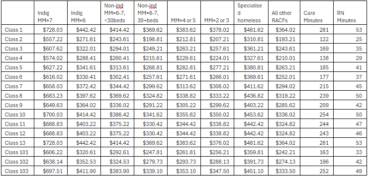 The change to the AN-ACC price in October will not just be an indexation to the National Efficient Price (NEP). The AN-ACC rates from 1 October 2024 will also see new weightings for each class’s NWAU. Additionally, Base Care tariffs will be adjusted, and new categories emerge for services in Modified Monash 2, 3 and 4. Similar changes to care minutes will be enacted. The base assumption will move from 200 to 215 minutes but there are also changes to the Relative Value Units (RVUs), which measure the general acuity of a person in any given class and determines the care minutes required.